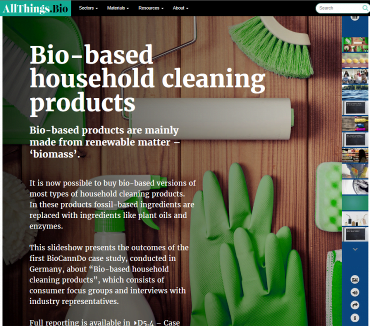 Findings are presented in the “Bio-based household cleaning products” slideshow, a combination of texts, images, videos and links to external resources based.