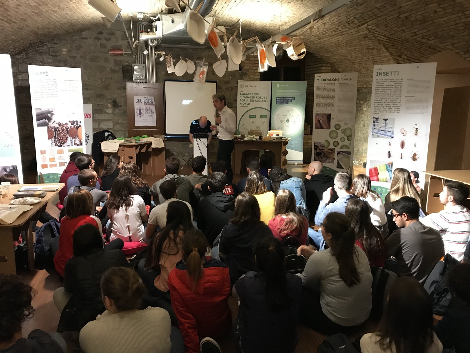 What is considered a waste could be a great resource for the circular economy and for the bioeconomy: fabrics from coffee grounds, elephant poop paper, clothes from apple and orange peel, cosmetics from the tomato’s skin. Biodegradable toys, insects for health and beauty, Spirulina as superfood, art restoration using prickly pear, mushrooms for construction, 3D printing with hemp: these are just some of the possible applications of the bioeconomy that have been shown to the students, families and to the large public.