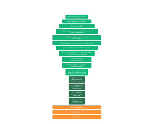 The crown starts with analyses on public engagement in regional and national bioeconomy strategies and presents the results of a large stakeholder consultation. Towards the top of the crown are the conclusions drawn from the numerous engagement activities – guidelines for practitioners, a policy paper and a report on lessons learned including recommendations for further research.