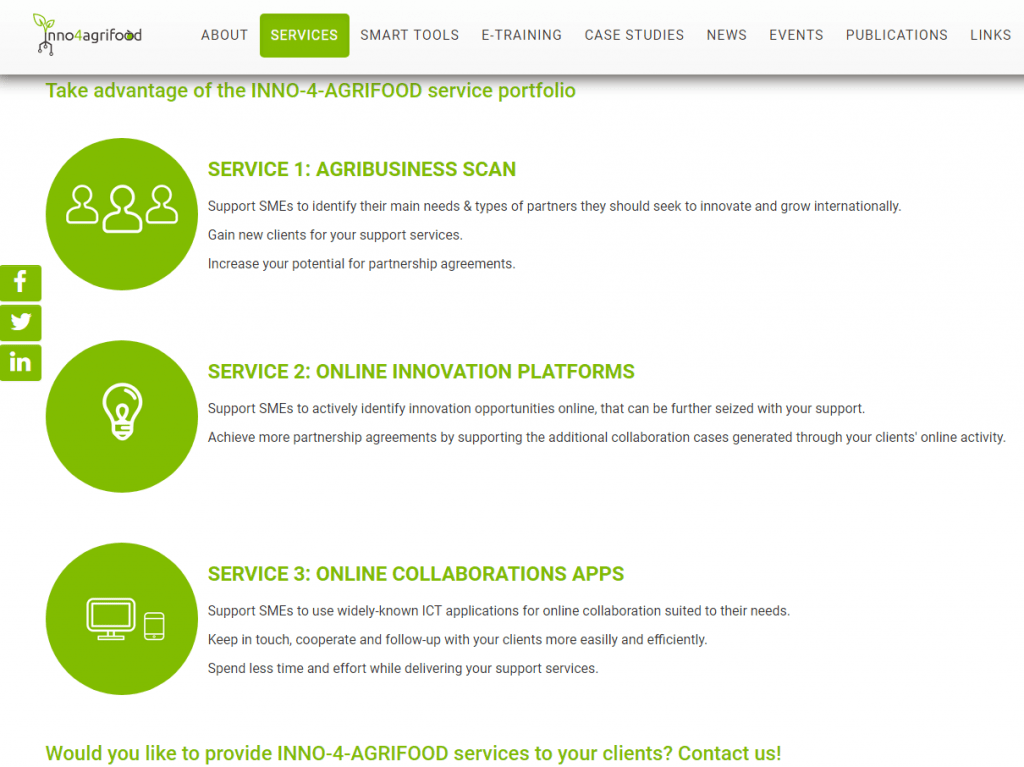 The INNO-4-AGRIFOOD consortium just fine-tuned three novel services that can be easily and free-of-change provided by consultants and advisors to agri-food SMEs: