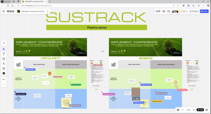 Finally, the project concluded its stakeholder engagement cycle with the “From Vision to Implementation: Shaping Policies to Boost the Circular Bio-Based Transition” workshops (February–March 2025). These sessions featured keynote insights on sectoral transition challenges, the current policy landscape, and SUSTRACK’s proposed policy options for the four focus sectors. Participants collaboratively assessed the strengths, weaknesses, and opportunities of these options, contributing to the formulation of evidence-based policy recommendations.