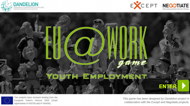 The social game EU@work has been designed and developed, in collaboration with the H2020-IIRS EU-funded projects Negotiate and EXCEPT, to test the knowledge and to increase awareness on EU Citizens perception about the work challenge faced by European Society.